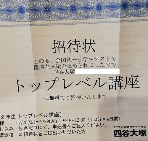 全国統一小学生テスト19年6月 夏期講習の無料招待状が届きました